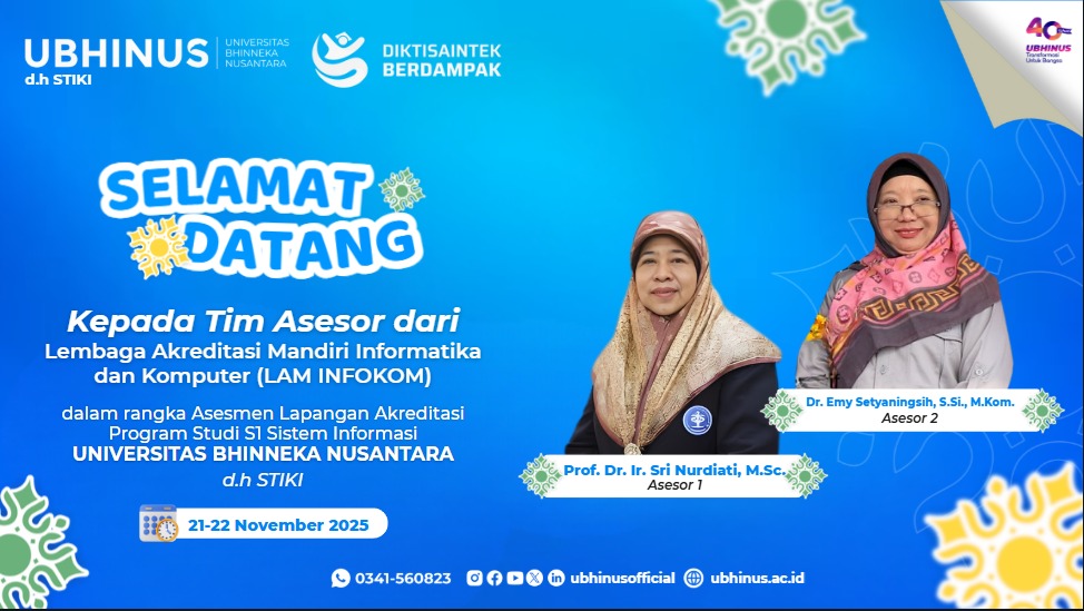 Read moreUniversitas Bhinus Indonesia (UBHINUS), yang sebelumnya dikenal sebagai STIKI, secara resmi menyelenggarakan Wisuda UBHINUS ke-1 pada 10 Desember 2025 bertempat di Hotel Aria Gajayana. Kegiatan ini menjadi tonggak sejarah penting dalam perjalanan kelembagaan UBHINUS sebagai perguruan tinggi yang telah bertransformasi menjadi universitas.